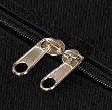 Bi-directional zips and a clear plastic sleeve on top so you can insert swing tags to label them and they fold flat, for easy storage too.